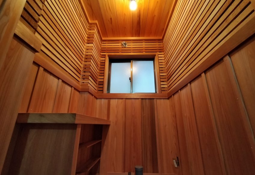 最高の室内環境を作る工事、解体から数えて二カ月弱。残す木工事も数日。昨日はトイレの木工事が完了した。 昨日は、腰板を張り、土壁の下地となる木ずりを打ち終えた。オーディオルームと使う材料はほぼ同じだが、少し施工方法を変え...